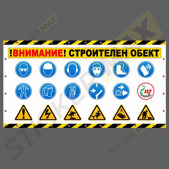 – Промазаният винил е гъвкав и лек, но същевременно достатъчно здрав, за да устои на вятър и други атмосферни влияния. Печат с висококачествени екосолвентни мастила, които осигуряват отлична видимост дори от голямо разстояние. Винила е с подгъв от 4см и монтирани капси ф12мм през 30см една от друга. Може да се навива и сгъва,което благоприятства неговото съхранение след употреба. Монтажа се осъществява посредством кабелни връзки, винтове и шайби, карабинери, опъващи въжета и др. Предупреждението, чрез винилов банер е бърз и ефективен начин да информирате хората за предстоящи или текущи строителни и ремонтни дейности. Трайност 2 – 4 години, според атмосферните влияния!