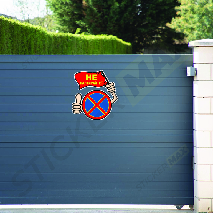 Стикер „Не паркирайте“ с форма на емотикон, който привлича внимание и ясно обозначава забрана за паркиране и престой по визуален и разбираем начин.